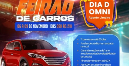 Limeira recebe, a partir desta quinta-feira (6/11), mais uma edição do Feirão de Carros organizado pela OMNI, financeira que focou...